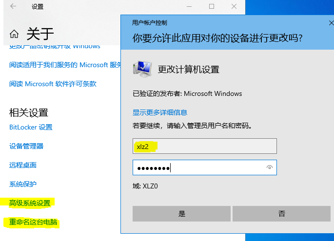 登录后我们使用xlz2普通用户尝试去做一些例如更改计算机名或高级系统设置这些操作。