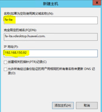 输入ita主机的主机名(要是忘记了去ita主机中用hostname查找一下),再输入对应的ip地址点击添加主机,添加正向解析完成