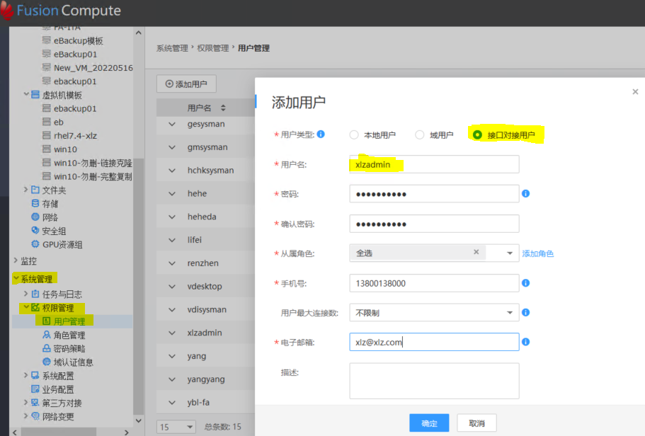 4.对接准备,需要在FC中添加一个接口对接用户(xlzadmin),需要在AD域里面创建一个域管理员用户(xlzadmin) , 还需要在DNS管理器里面配置ita所在主机的正反向解析记录