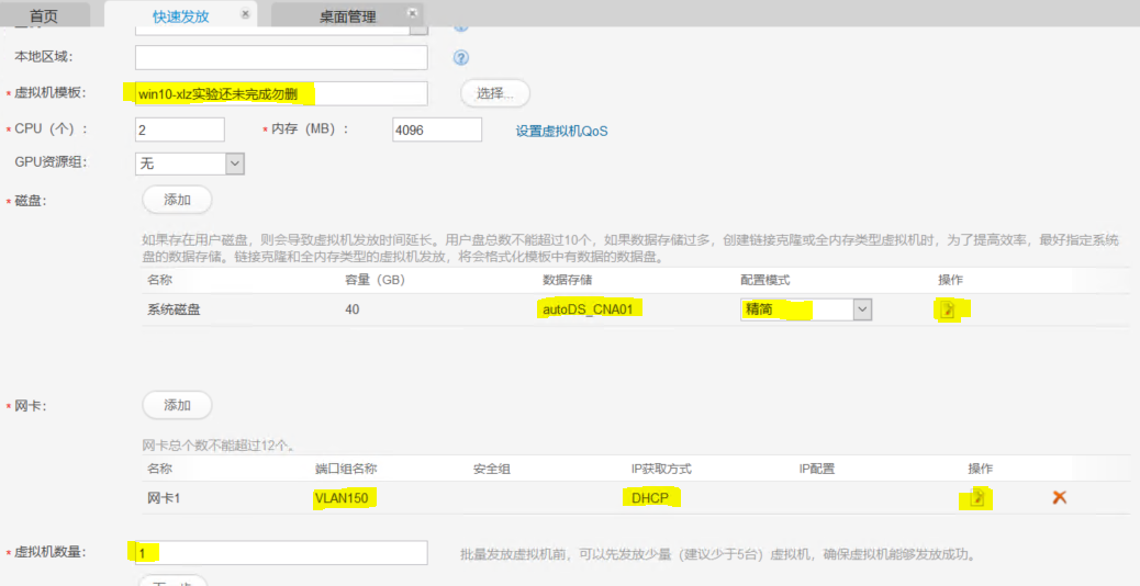 1.桌面管理-虚拟机模板,类型要与制作模板时的类型保持一致