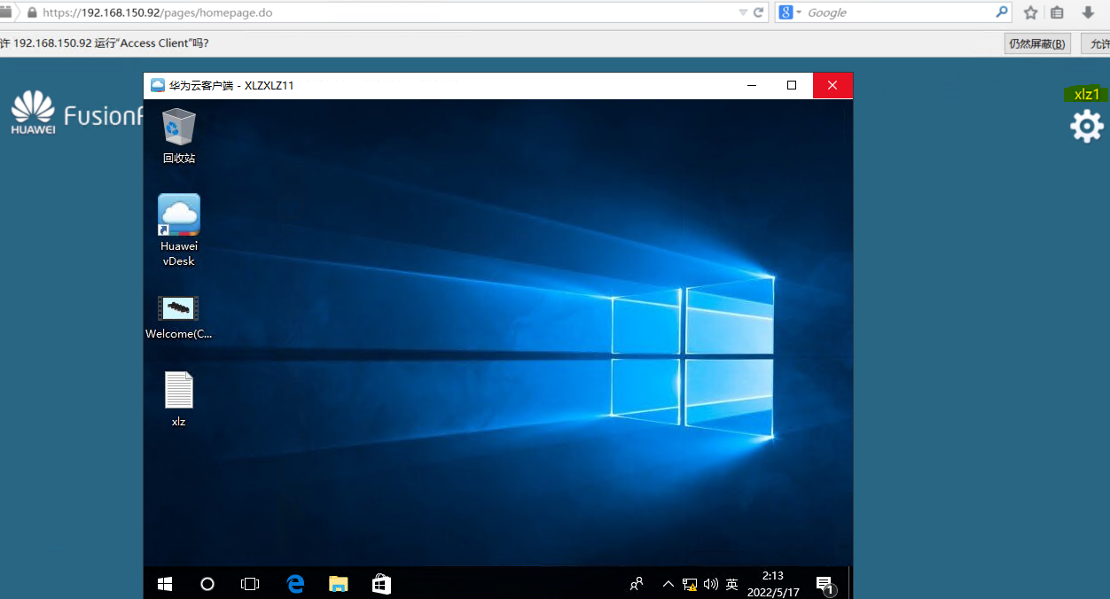 测试发放虚拟机成功并用xlz1普通用户登录成功