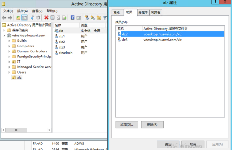 部署链接克隆:方法雷同,只是多了一步加域配置,在AD域中新建一个xlz组和两个用户xlz2、xlz3,并把这两个用户添加进xlz组