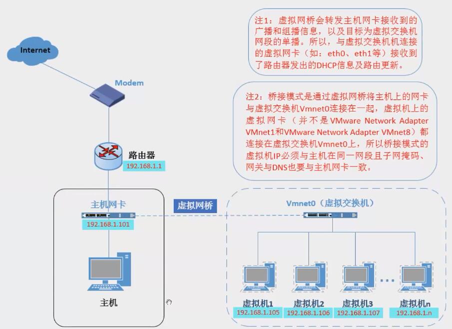 Vmworkstations3种网络模式与宿主机网络对接topo图