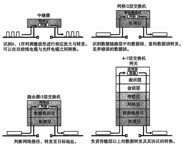 路由器是在OSI模型的第三层----网络层面上连接两个网络、并对分组报文进行转发的设备。网桥是根据物理地址(MAC地址)进行处理,而路由器/三层交换机则是根据IP地址进行处理的。由此,TCP/IP中的网络层的地址就成为了IP地址。