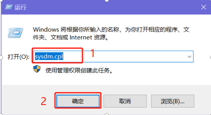 (2)配置环境变量,WIN+R 可以快速打开运行对话框,输入sysdm.cpl,点击确定,找到高级页签,打开环境变量。