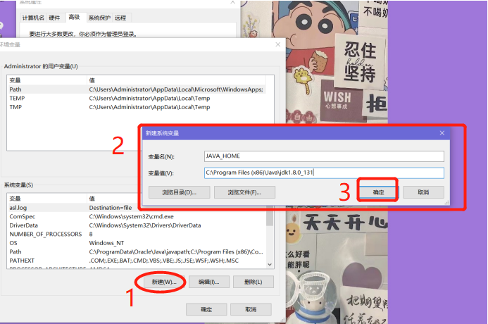 (3)系统变量区域范围,点击新建,新建JAVA_HOME系统变量,变量值为jdk安装的路径或你更改安装路径,确定保存。(看清楚是系统变量区不是用户变量,不要点错了)