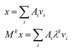 3.利用M的特征向量分解x,必定可以得到(向量线性无关的性质)