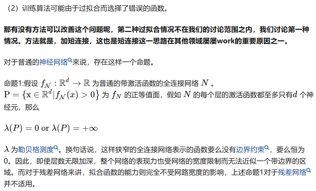 来自知乎的优质回答,也间接说明了单纯增加层数没什么用,短连接指的是残差连接: