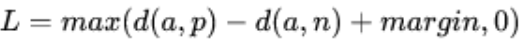 - Hard Triplets:d(a,n)<d(a,p) 。负样本的距离比正样本的距离还小,此时损失L大于margin。