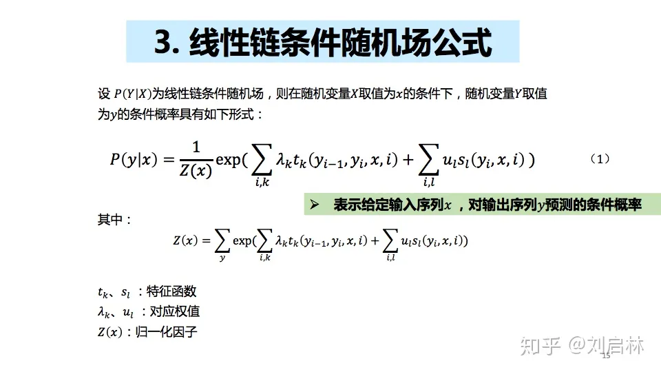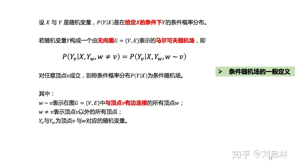 倘若给定一个已知的X随机变量,求取条件概率,马尔可夫随机场会变为条件随机场。CRF借鉴了热力学中的团概念,但本文不做解释,也不提及团这一概念。