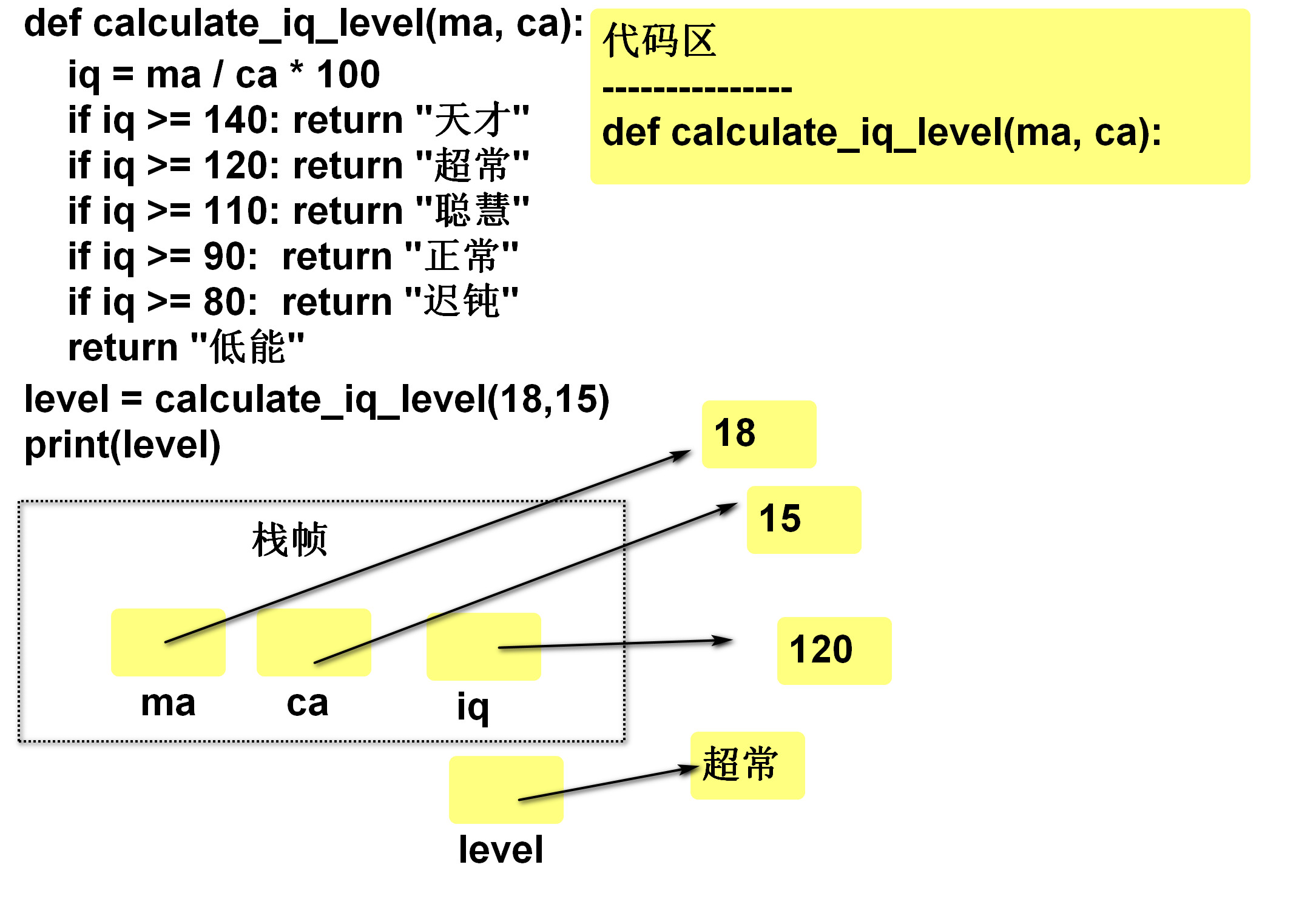 程序自上而下运行,将函数calculate_iq_level加载到代码区