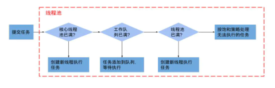 核心线程池没满,就创建新线程;满了就往队列添加;队列满了,再判断最大线程池满没满,没满继续创建线程,满了就执行线程饱和策略
