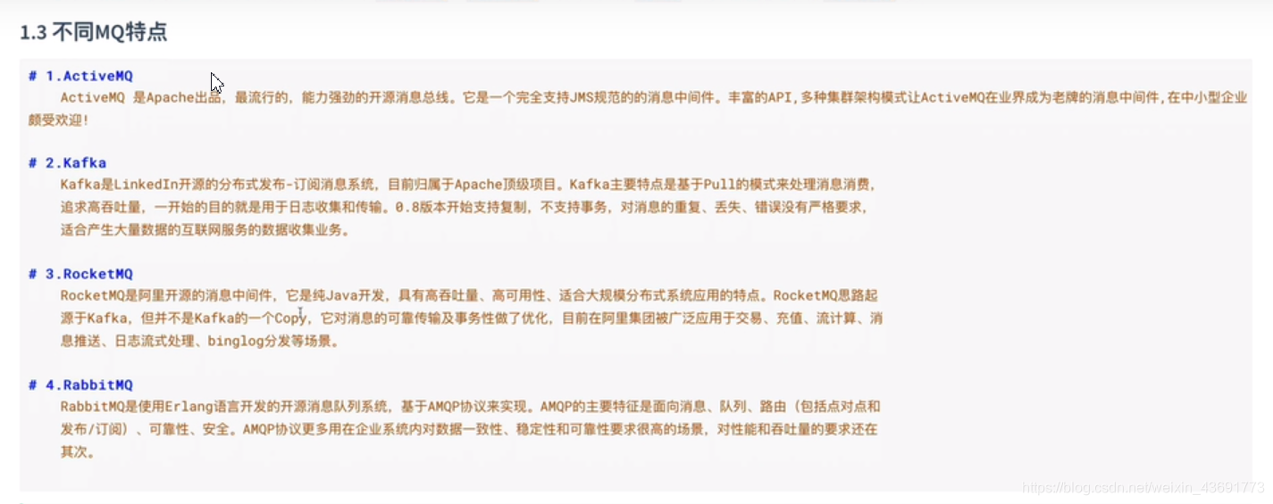 生产者将消息发送到服务的的虚拟主机内的交换机 交换机将消息通过特定规则放入特定的消息队列 消息队列再将消息发送给消费者 (Kafka是消费者去消息队列去读取消息)