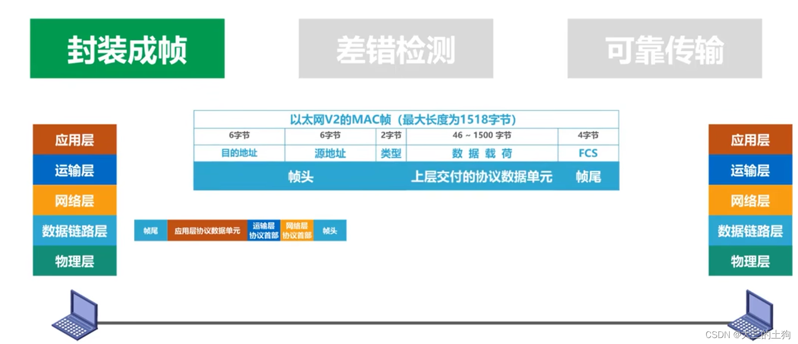在数据后面添加上的冗余码称为帧检验序列 FCS (Frame Check Sequence)。 -