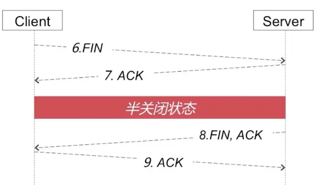 B 收到之后发出确认,此时 TCP 属于半关闭状态,B 能向 A 发送数据但是 A 不能向 B 发送数据。
