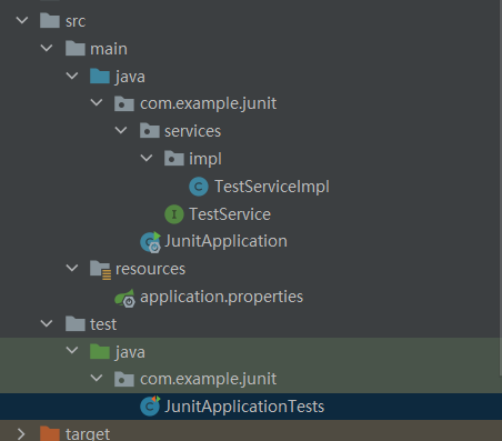 1)创建一个名为Junit的 SpringBoot 工程,工程目录结构如下