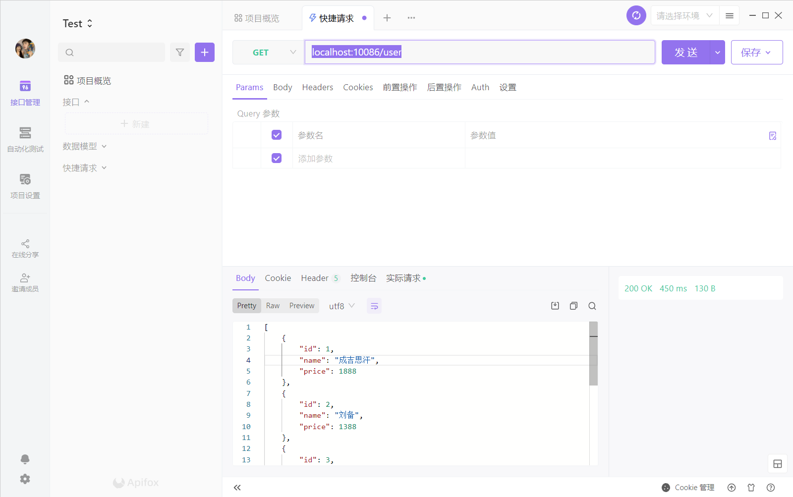 打开Apifox或者Postman,发送请求,得到数据与数据一一对应。