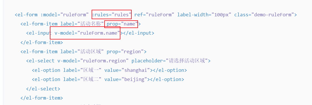 这种表单验证官方文档上写的很详细, 只需注意将Form-Item 的 prop 属性设置为需校验的字段名即可。