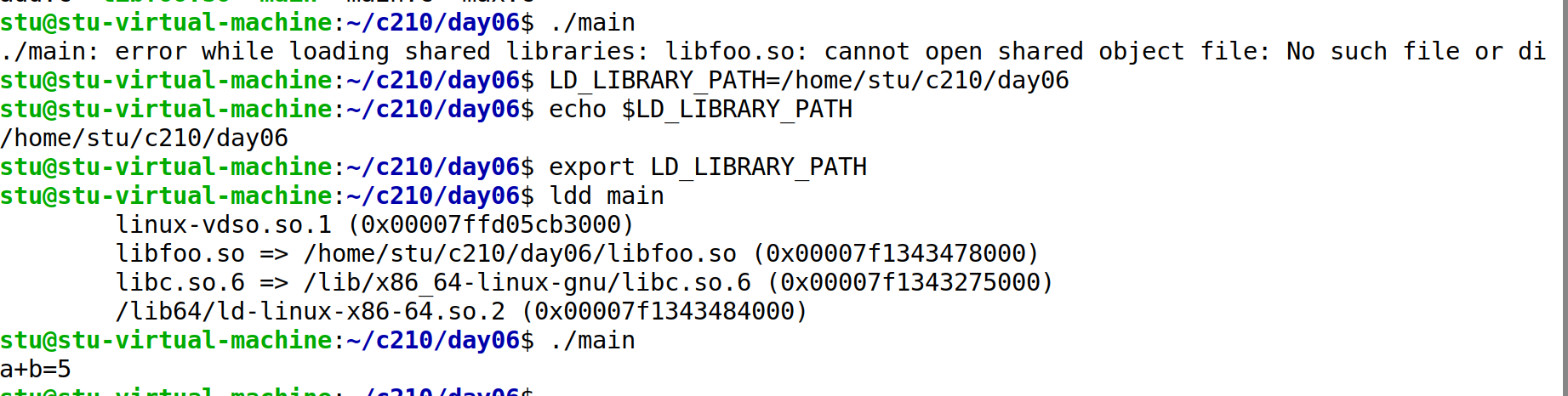 5)如果库不在标准文件下,则通过设置环境变量来指定加载库的路径。