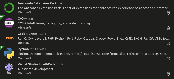 常见的编程环境有很多,我个人比较推荐VSCode。它由微软开发并维护,目前拥有非常多优秀的插件,可以很方便地用于各种语言的开发。下面是我常用的插件,支持C/C++,Python的开发: