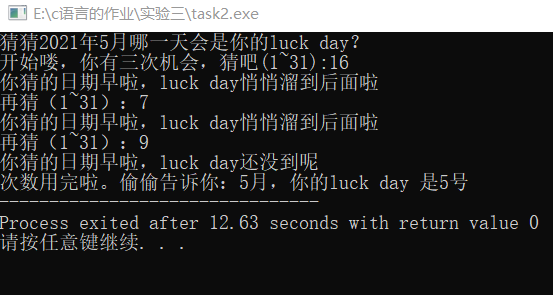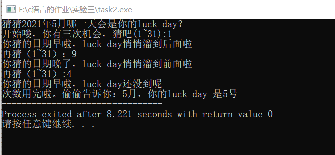 printf("你猜的日期晚了,luck day悄悄溜到前面啦\n再猜(1~31):");