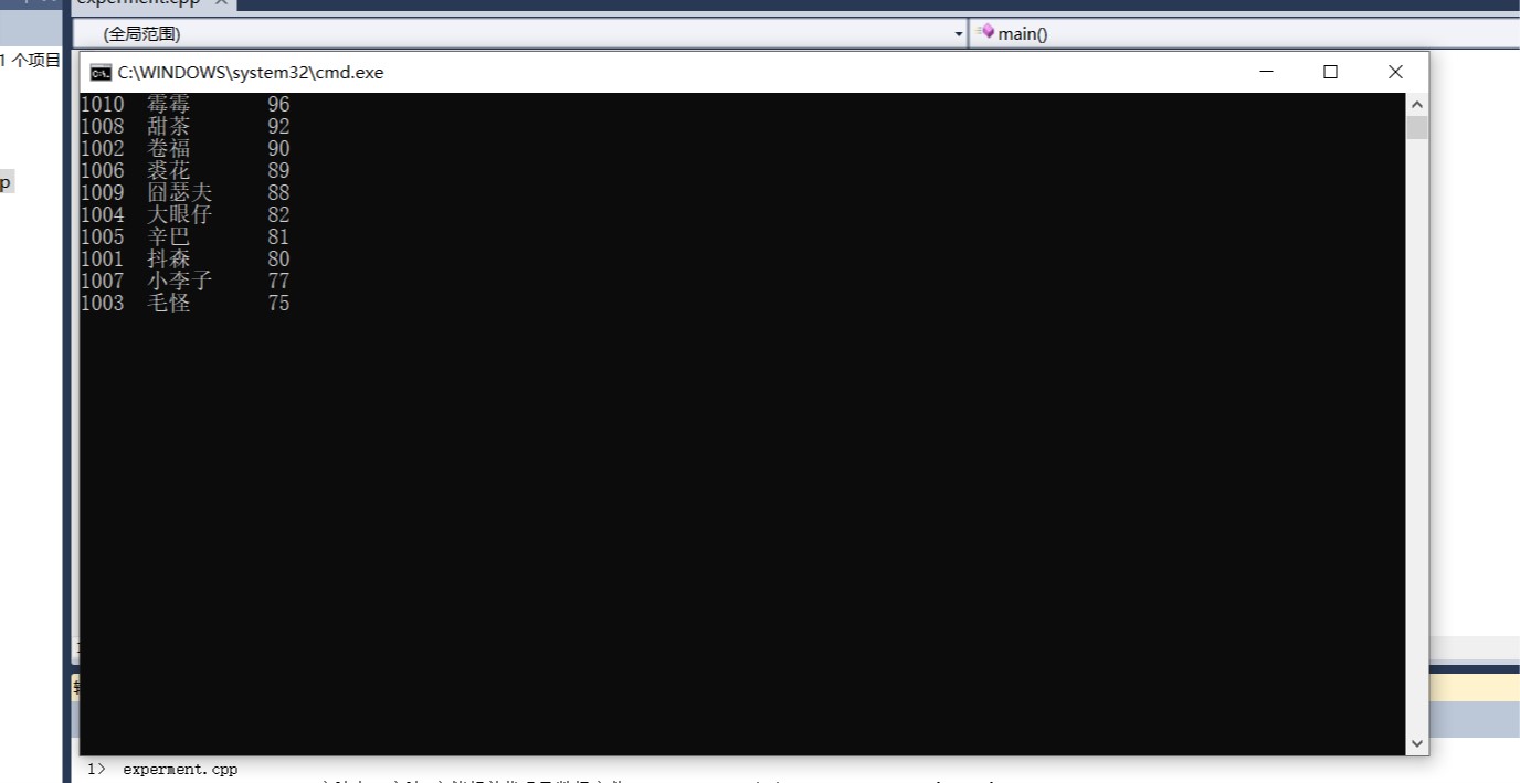 1、在屏幕上正确输出了按分数由高→低排序的信息,且生成了文本文件file3.dat。