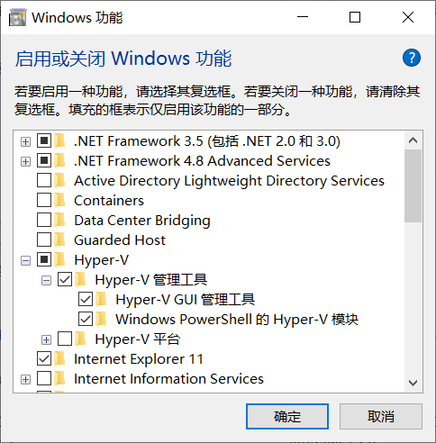 否则在控制面板的程序里启用“Hyper-V 管理工具”功能,不需要启用“Hyper-V 平台”,并重启电脑。