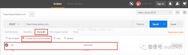 有四种形式可以选择,form-data主要用于上传文件。x-www-form-urlencoded是表单常用的格式。raw可以用来上传JSON数据
