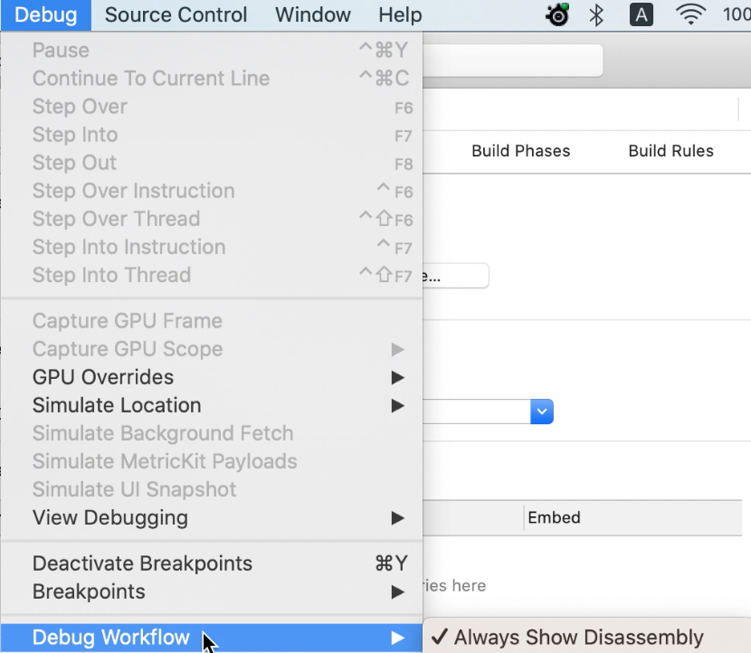在Debug选项中将Debug Workflow中总是显示反汇编(disassembly)选项勾选