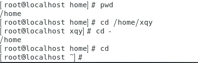 切换目录:用户通过cd命令切换目录,cd命令后不加任何路径表示直接返回到root目录,”cd -”表示返回上次目录。如图: