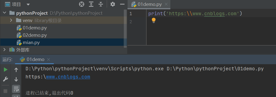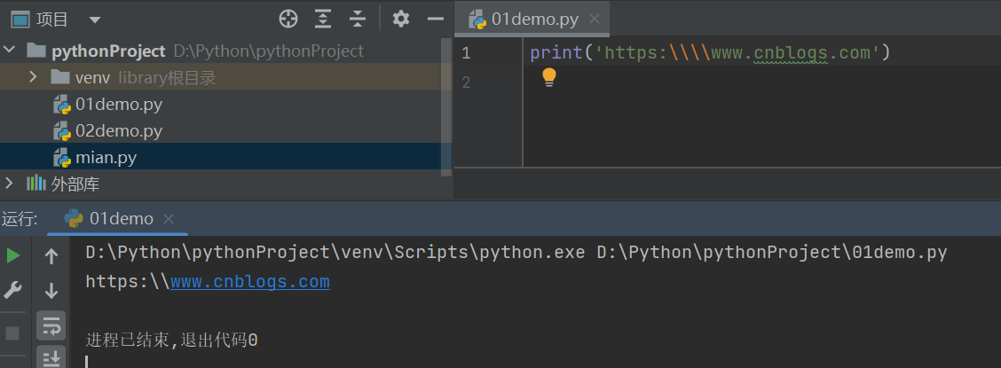 想要输出双斜杆发现少了一个,这是因为其中一个斜杆被当做转义符了,如果想要输出双斜杠需要写四个斜杆,其中两个斜杆做转义符