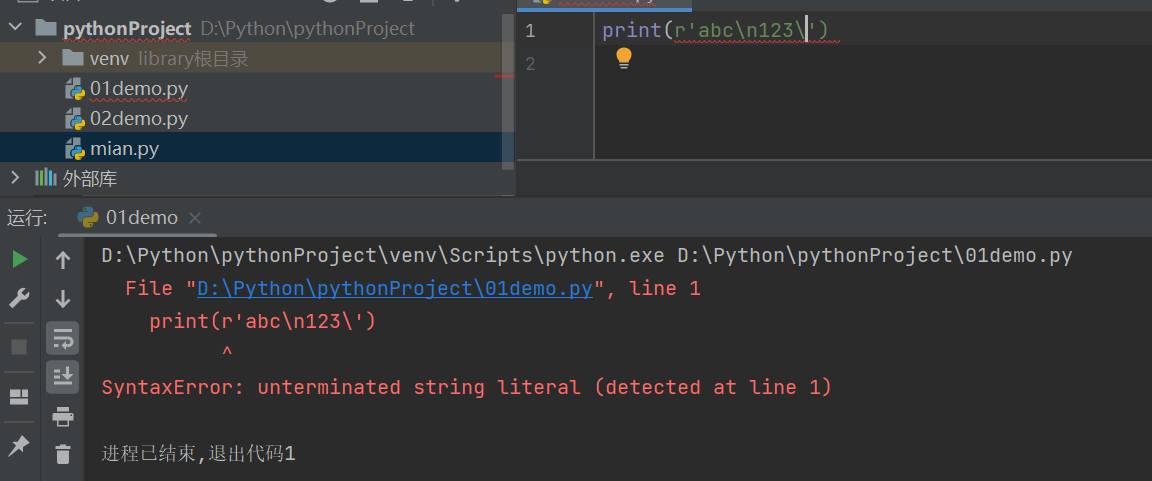 当加了r之后,字符串的后面不能加反斜杠\,否则会报错