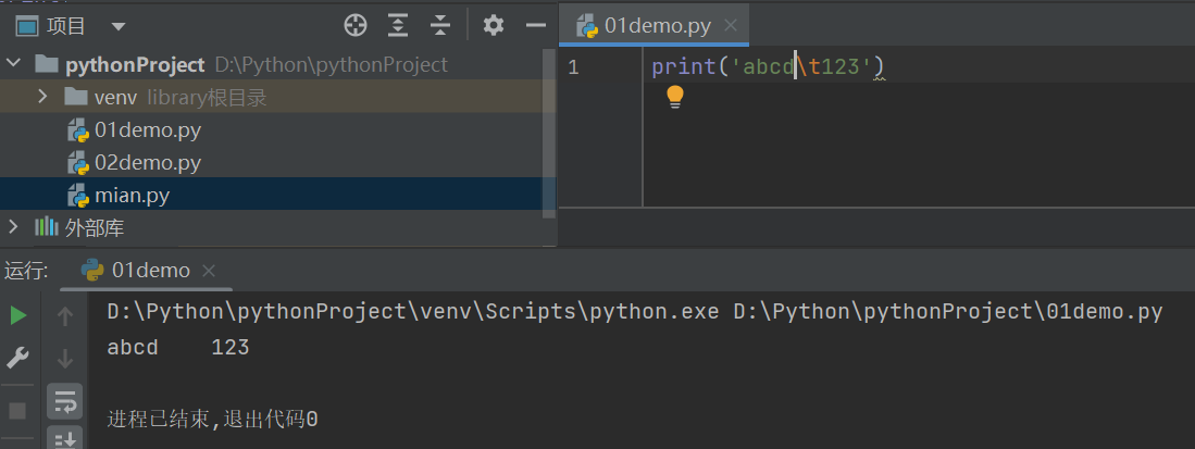 水平制表符:\t---tab,表示光标移动到下一组四个空格处
