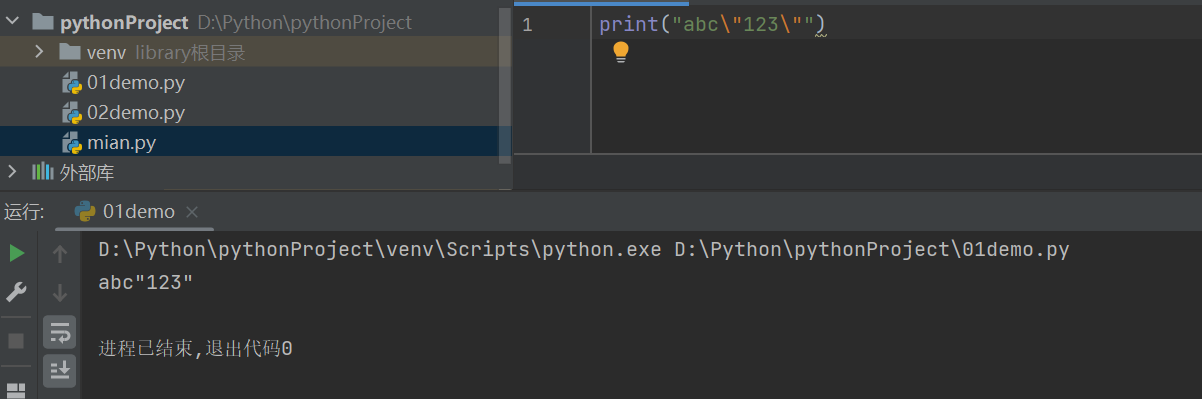 1.1 当字符串中包含反斜杠、单引号或双引号等特殊字符时,需要使用反斜杠对其进行转义(转换成另一个含义)