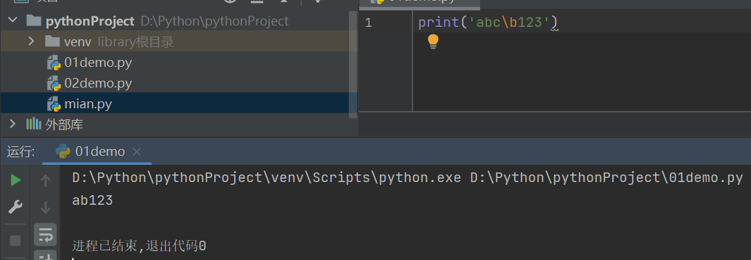 退格:\b---backspace,表示回退一个字符,将\b前面一个字符删除