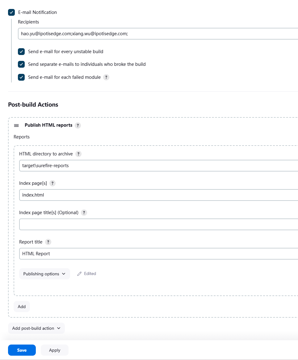 <build> <plugins> <plugin> <groupId>org.apache.maven.plugins</groupId> <artifactId>maven-compiler-plugin</artifactId> <version>3.8.1</version> <configuration> <source>1.8</source> <target>1.8</target> </configuration> </plugin> <plugin> <groupId>org.apache.maven.plugins</groupId> <artifactId>maven-surefire-plugin</artifactId> <version>2.22.2</version> <configuration> <suiteXmlFiles> <suiteXmlFile>testng.xml</suiteXmlFile> </suiteXmlFiles> </configuration> </plugin> </plugins> </build>