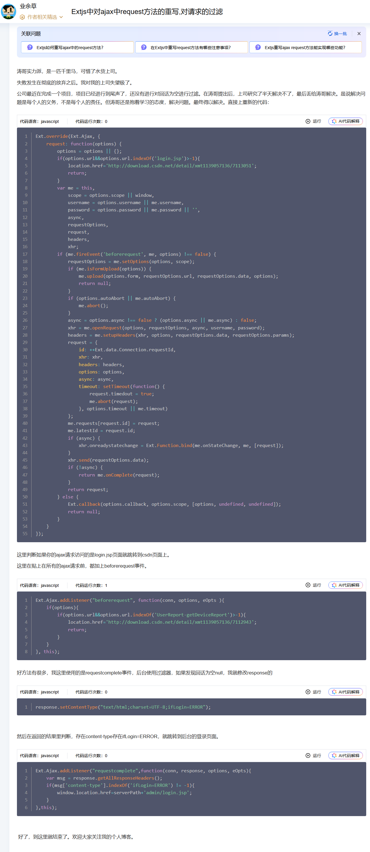 Extjs中对ajax中request方法的重写,对请求的过滤