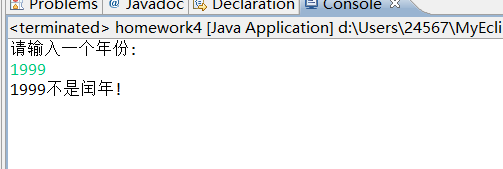 import java.util.Scanner; //输入一个年份,判断是不是闰年(能被4整除但不能被100整除,或者能被400整除) public class Exe4_1_1 { public static void main(String[] args) { Scanner input = new Scanner(System.in); System.out.println("请输入一个年份:"); int year = input.nextInt(); if (year%4==0 && year%100!=0||year%400==0) { System.out.print(year + "是闰年!"); } else { System.out.print(year + "不是闰年!"); } } }