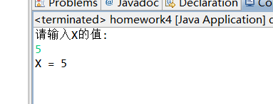 import java.util.Scanner; public class Exe4_2_4 { /* 编写程序, 判断一个变量x的值,如果是1, 输出x=1, 如果是5,输出x=5,如果是 10,输出 x=10, 除了以上几个值,都输出x=none。 */ public static void main(String[] args) { Scanner input = new Scanner(System.in); System.out.println("请输入X的值:"); int x = input.nextInt(); switch (x) { case 1:case 5:case 10: System.out.println("X = " + x); break; default: System.out.println("X = none"); break; } } }