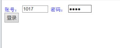 <%@ page language="java" import="java.util.*" pageEncoding="UTF-8"%> <!DOCTYPE HTML PUBLIC "-//W3C//DTD HTML 4.01 Transitional//EN"> <html> <head> </head> <body> <script type="text/javascript"> function login(){ if(dologin.admin.value==""){ alert("请输入账号"); return; } else if(dologin.pass.value==""){ alert("请输入密码"); return; } dologin.submit(); } </script> <form action="curry.jsp" name ="dologin"> <p style="font-family: 宋体;font-size: 18; color:blue"> 账号: <input type="text" name="admin" size=6/> 密码: <input type="password" name="pass" size=6/> <br><input type="button" value="登录" onclick="login()"/> </form> </body> </html> <%@ page language="java" import="java.util.*" pageEncoding="utf-8"%> <% String path = request.getContextPath(); String basePath = request.getScheme()+"://"+request.getServerName()+":"+request.getServerPort()+path+"/"; %> <!DOCTYPE HTML PUBLIC "-//W3C//DTD HTML 4.01 Transitional//EN"> <html> <head> </head> <body> <% String admin=request.getParameter("admin"); String pass=request.getParameter("pass"); if(admin.equals(pass)){ request.getRequestDispatcher("ok.jsp").forward(request, response); } else{ response.sendRedirect("no.jsp"); } %> </body> </html> <%@ page language="java" import="java.util.*" pageEncoding="UTF-8"%> <% String path = request.getContextPath(); String basePath = request.getScheme()+"://"+request.getServerName()+":"+request.getServerPort()+path+"/"; %> <!DOCTYPE HTML PUBLIC "-//W3C//DTD HTML 4.01 Transitional//EN"> <html> <head> </head> <body> 登录成功!!!!!!! </body> </html> <%@ page language="java" import="java.util.*" pageEncoding="UTF-8"%> <% String path = request.getContextPath(); String basePath = request.getScheme()+"://"+request.getServerName()+":"+request.getServerPort()+path+"/"; %> <!DOCTYPE HTML PUBLIC "-//W3C//DTD HTML 4.01 Transitional//EN"> <html> <head> </head> <body> 登录失败!!!!!!! </body> </html>