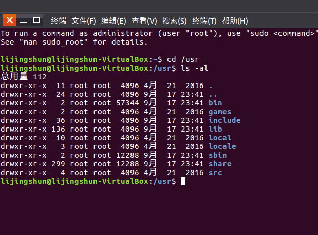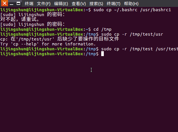 (10)在/tmp下新建目录test,再复制这个目录内容到/usr