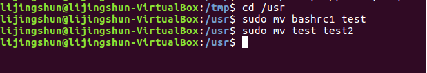 (9)将主文件夹下的.bashrc复制到/usr下,命名为bashrc1