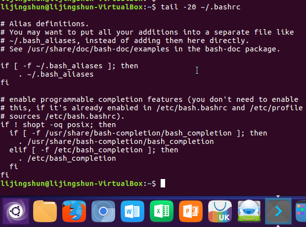 (20)查看主文件夹下.bashrc文件内容最后20行