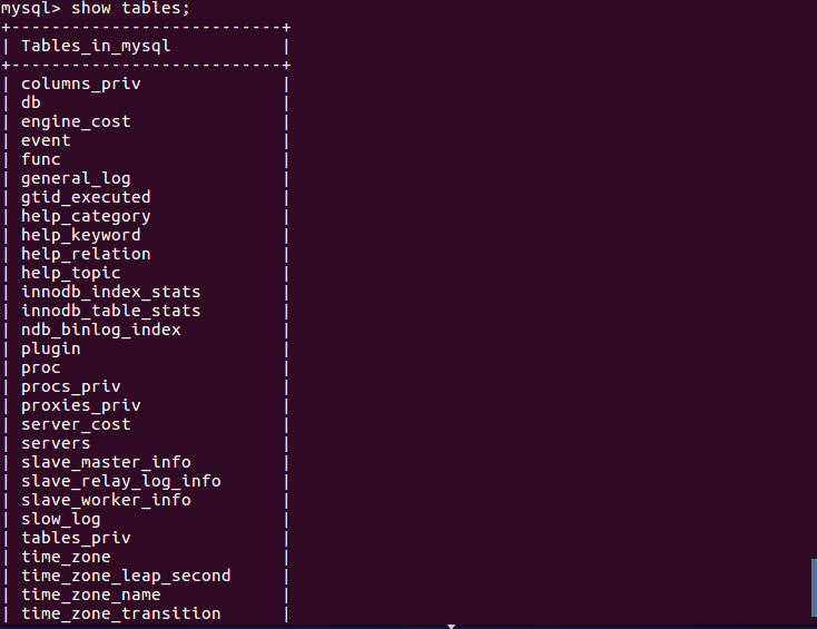 (28)展示库里表格:show tables;