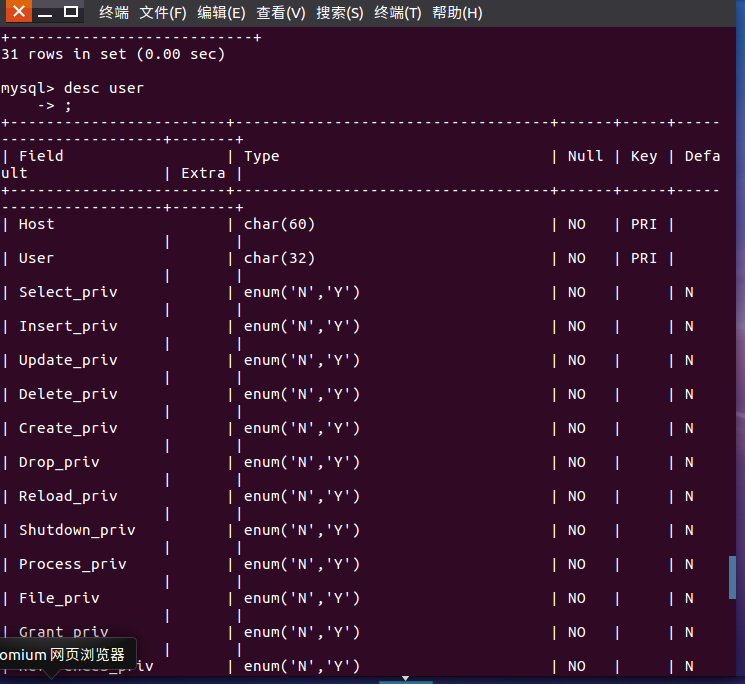 (29)显示某一个表格属性:desc 表格名;