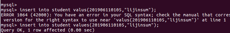 (33)向表格student中插入具体内容:insert into 表格名(名)values(value);
