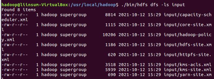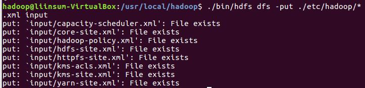 将hadoop的配置文件上传到hdfs上的input目录下。