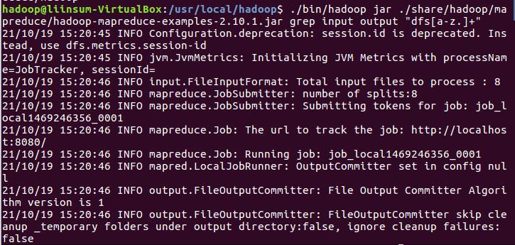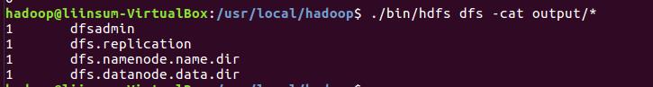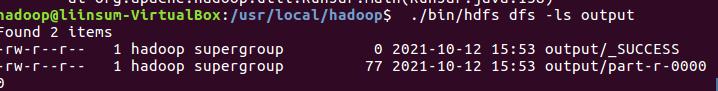 运行MapReduce示例作业,输出结果放在output目录下。