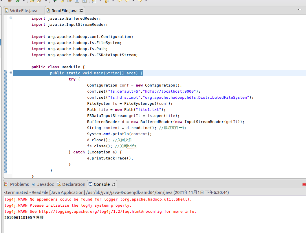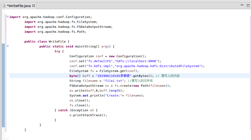 二、利用hadoop 的java api,向HDFS写一个文件。